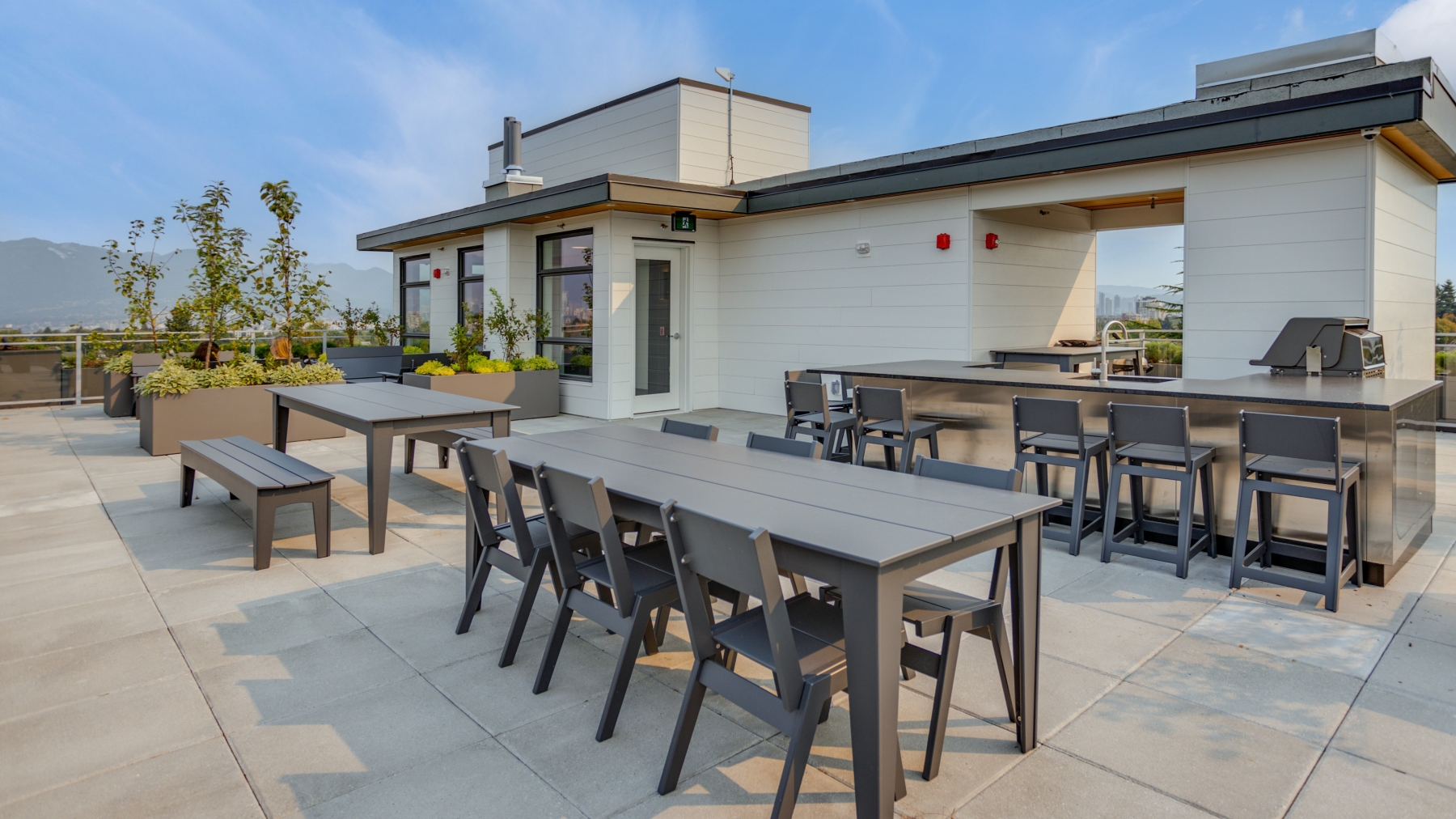 - 6Rooftop deck with outdoor kitchen, dining space, and social lounge seating