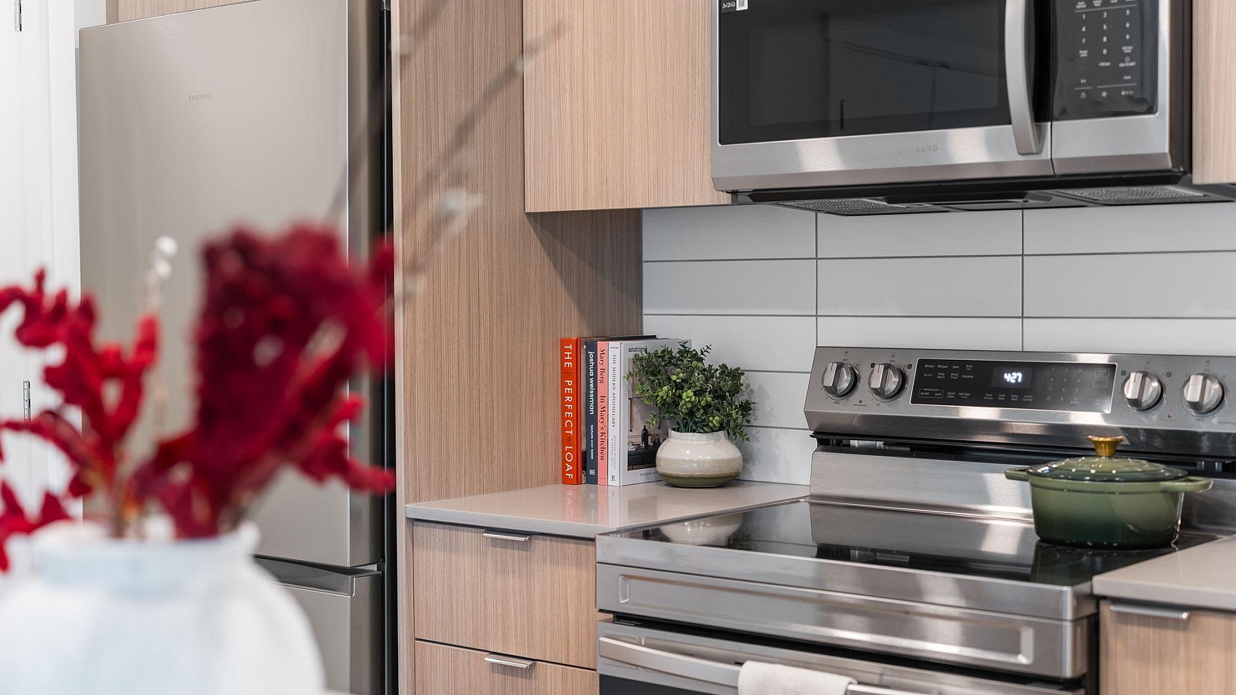Enjoy the rooftop patio crafted to socialize, relax, or exercise, featuring a yoga space, children’s play corner, bbq and social seating area, in addition to community planter pots with sweeping views of city and mountains. Stay active in the fully-equipped fitness centre, or enjoy the multi-purpose entertainment space complete with a full kitchen and coworking area, perfect for events, studying, or remote work. Arlo also has a dedicated dog wash station to keep your furry friends clean.